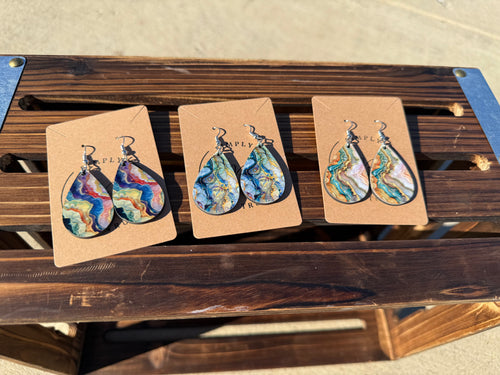 Handmade earrings using either polymer clay, acrylic or wood. All fixings are nickel free and hypoallergenic.